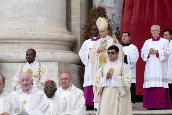 De installatie van paus Leo XIV tijdens een eucharistieviering op het Sint-Pietersplein op 18 mei.